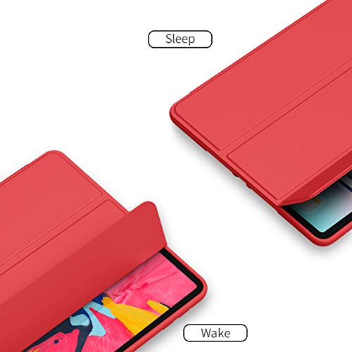 VAGHVEO Custodia per iPad Pro 11 2018 Smart Case Ultrasottile e Leggera con Funzione di Auto Sveglia/Sonno Cover in TPU Flessibile Supporta la Carica di iPad Pencil per Apple iPad PRO 11", Rosso