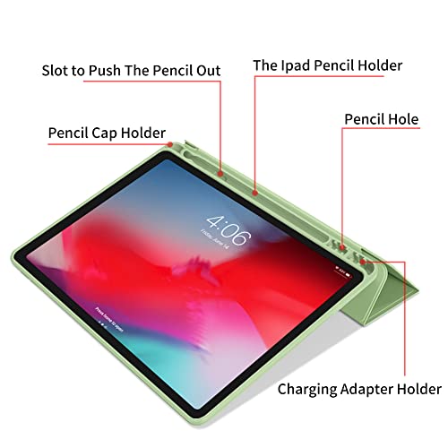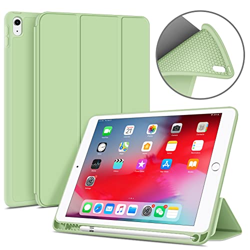 VAGHVEO Custodia per iPad Air 5 Generazione 2022 / iPad Air 4 Generazione 2020 10.9 Pollici Cover con Portapenne, A Tre Ante Flessibile Smart Cases con Morbida TPU Copertura Posteriore, Verde Chiaro