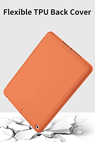 VAGHVEO Custodia per iPad Air 10.5 Pollici 2019 con Pencil Holder, Sottile a Tre Ante Cases [Auto Svegliati/Sonno], Flessibile Morbido TPU Copertura Posteriore per iPad Air 3a Generazione, Arancione