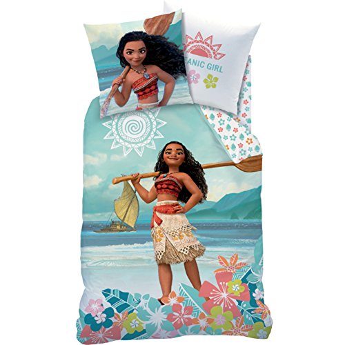 Vaiana - Parure di lenzuola (3 pezzi) - Copripiumino (140 x 200) + federa (63 x 63) + lenzuolo con angoli (90 x 190) - Moana
