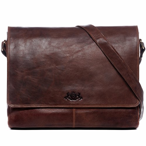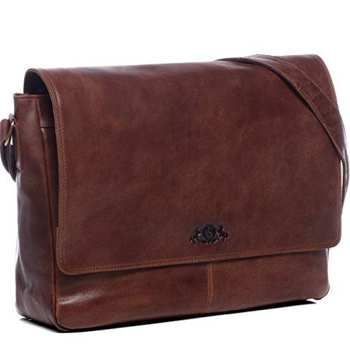 SID & VAIN Borsa tracolla porta pc vera pelle SPENCER grande XL I Messenger portadocumenti Università Ufficio Lavoro Business uomo donna I cartella per laptop computer portatile marrone-vintage