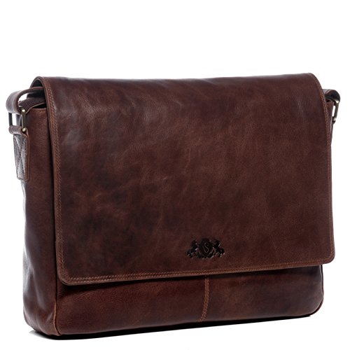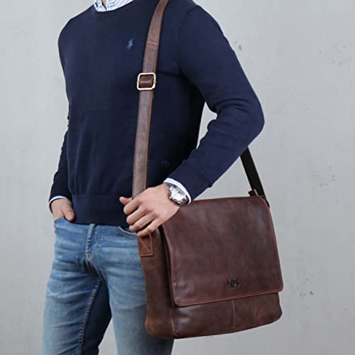 SID & VAIN Borsa tracolla porta pc vera pelle SPENCER grande I Messenger portadocumenti Università Ufficio Lavoro Business uomo donna I cartella per laptop computer portatile marrone-vintage