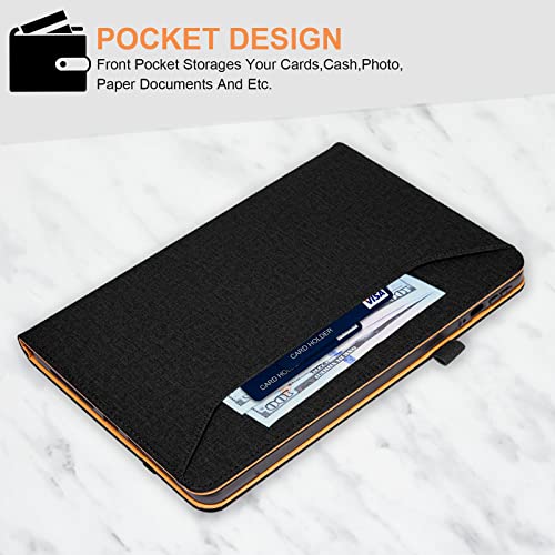 Portatile multifunzionale: 1. La cinghia di fissaggio elastica esterna mantiene la custodia chiusa senza timore di aperture accidentali. 2. I cinturini da polso elastici ti aiutano a tenere il tablet comodamente e saldamente, migliorando la sicurezza durante l'utilizzo del dispositivo. 3. Tasca frontale per riporre carte, contanti, foto, documenti cartacei, ecc.