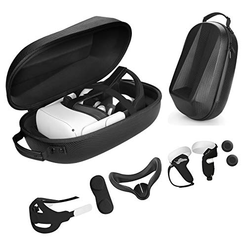 Vakdon Custodia da Viaggio 7 in 1 Set per Oculus Quest 2 Visore VR all-in-one, K6 Regolabile Cinturino per Testa + Facciale Cover + Coperture per Controller, Oculus Quest 2 Accessori (Nero)