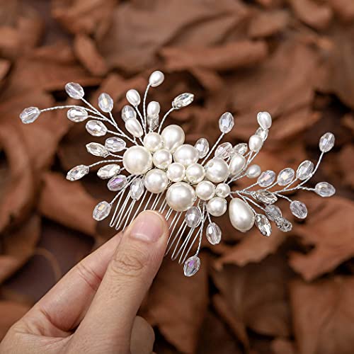 Vakkery Pettine per capelli da sposa con perle in argento, accessori per capelli da sposa per donne e ragazze