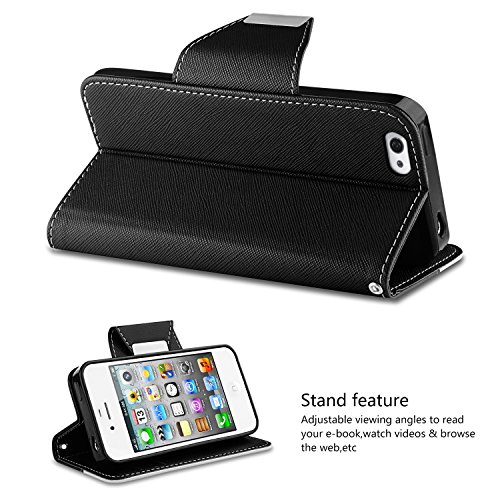 Vakoo iPhone 4 Custodia iPhone 4S Cover flip a portafoglio in pelle sintetica premium Protettiva Custodia per Apple iPhone 4/4S (Nero Bianco)