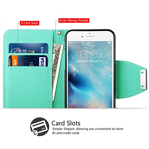 Vakoo [Premium PU-Pelle Cover per iPhone 6S, Cover per iPhone 6, Portafoglio Custodia per Apple iPhone 6S/6 (4,7'') - Vakoo [Premium PU-Pelle Cover per iPhone 6S, Cover per iPhone 6, Portafoglio Custodia per Apple iPhone 6S/6 (4,7'') - Menta Bianco