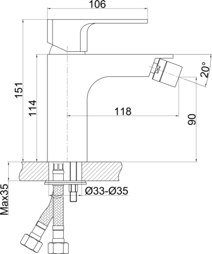Include: Rubinetto bidet cromato monocomando quadrato serie Sicura. Cartuccia monocomando in ceramica da 35 mm. 2 flessibili da 3/8 da 35 mm inclusi.