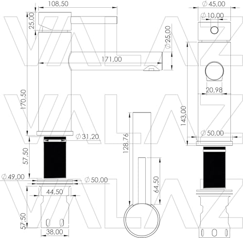 Include: Rubinetto per lavabo rotondo rotondo spazzolato con beccuccio dritto serie leva