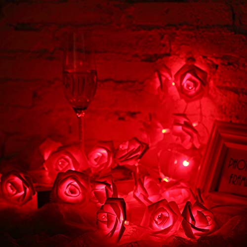San Valentine Luci della Stringa Rosa, 6.5 ft 20 LED Luce Floreale, Alimentato a Batteria con 8 Modalità, Telecomando e Timer Decorazione Romantica per Matrimonio, San Valentine (Rosa Rossa)