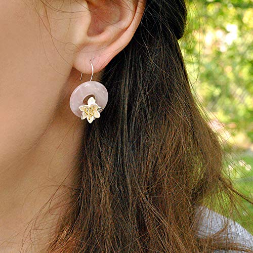 ✦ San Valentino ✦ Springlight S925 Orecchini in argento Sterling con pietre di loto, orecchini in argento 925, da appendere, fatti a mano, gioielli personalizzati per le donne (rosa), Argento