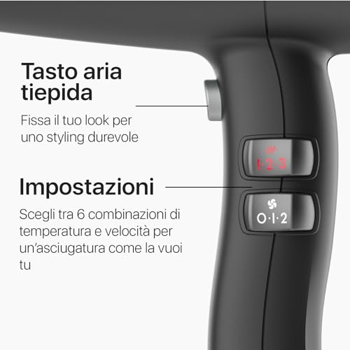 6 combinazioni di temperatura/flusso d'aria per ogni tipo di styling