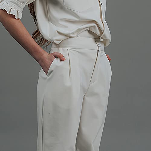 Valeria Mazza Pantalone da Donna in Misto Cotone Bianco Elasticizzato vestibilità Comoda Tasche Laterali America Zip Frontale e Bottone Rivestito in Tinta Made in Italy