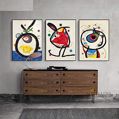 ValerieMantz Stampe su Tela Poster e Dipinti Miro Stile Astratto Classico Colore Decor Wall Art Picure 3 Pannelli per Soggiorno Decorazioni per la casa