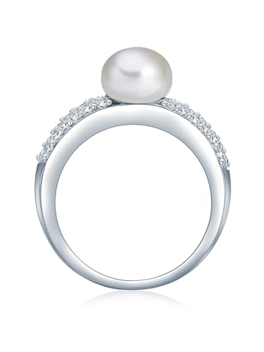 Valero Pearls Anello da Donna in Argento Sterling 925 con rodio con Perle coltivate d'acqua dolce bianco e Zircone bianco Taglia 16 60201417