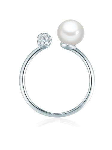 Valero Pearls Anello di perle da Donna in Argento Sterling 925 con Zirconia Perla di coltura di acqua dolce