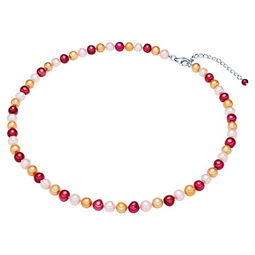 Valero Pearls Catena da Donna in Argento Sterling 925 con rodio con Perle coltivate d'acqua dolce rosa fucsia salmone 60020082