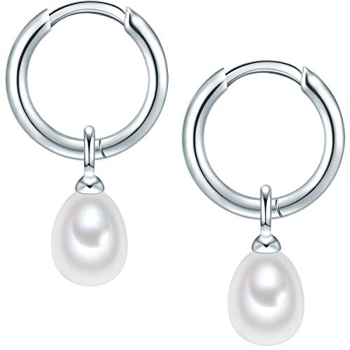 Valero Pearls Orecchini a cerchio da donna in argento sterling 925 con perle d'acqua dolce bianche - Orecchini da donna con perle d'acqua dolce