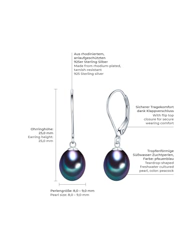 Valero Pearls Orechinni pendenti da Donna in Argento Sterling 925 con rodio con Perle coltivate d'acqua dolce blu pavone 60201693