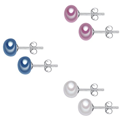 Valero Pearls - Set 3 pezzi orecchini con perle d'acqua dolce / di allevamento - Argento Sterling 925 - Gioielli con perle, Orecchini in Argento Sterling, Gioielli d'argento - 60923011