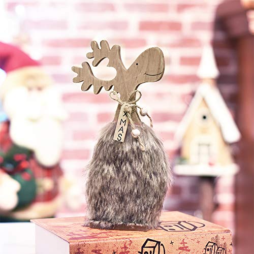 Valery Madelyn Decorazione Natalizia in Legno Decorazione Renne Set di 2 con soffice Pelliccia Finta 24.5cm in Piedi Alce Figurine di Natale Cervo Figurine Animali Foresta Decorazione