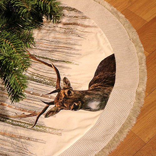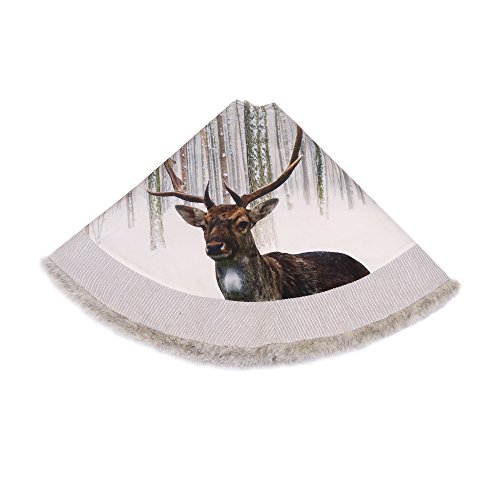 Valery Madelyn Woodland Velvet Silver White Christmas Tree Skirt, 3D Deer Printed Design with Grey Fur Trim Border (42 Inch/106CM)