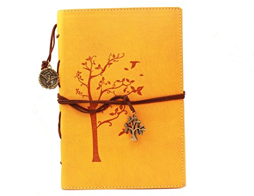 Valery, quaderno vintage, formato: DIN A5, rilegato, diario a righe, materiale: pelle in poliuretano, diario di viaggio ricaricabile, inclusi 160 fogli, 320 pagine a righe, carta senza acido, taccuino, idea regalo, colore: giallo retrò (lingua italiana non garantita)