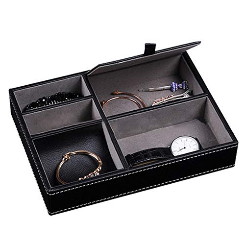 Valet Organizer Tray 4 scomparti Organizer per scrivania Tavolo in pelle Tavolo da scrivania Comò Portafoglio Scatola di immagazzinaggio per gioielli da ufficio (25,5x18,5x5cm)