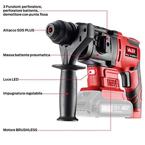 VERSATILITÀ: la batteria da 18V con capacità di 3Ah e il carica batteria da 2,4A inclusi sono compatibili con tutti i prodotti a della gamma OneAll di Valex.