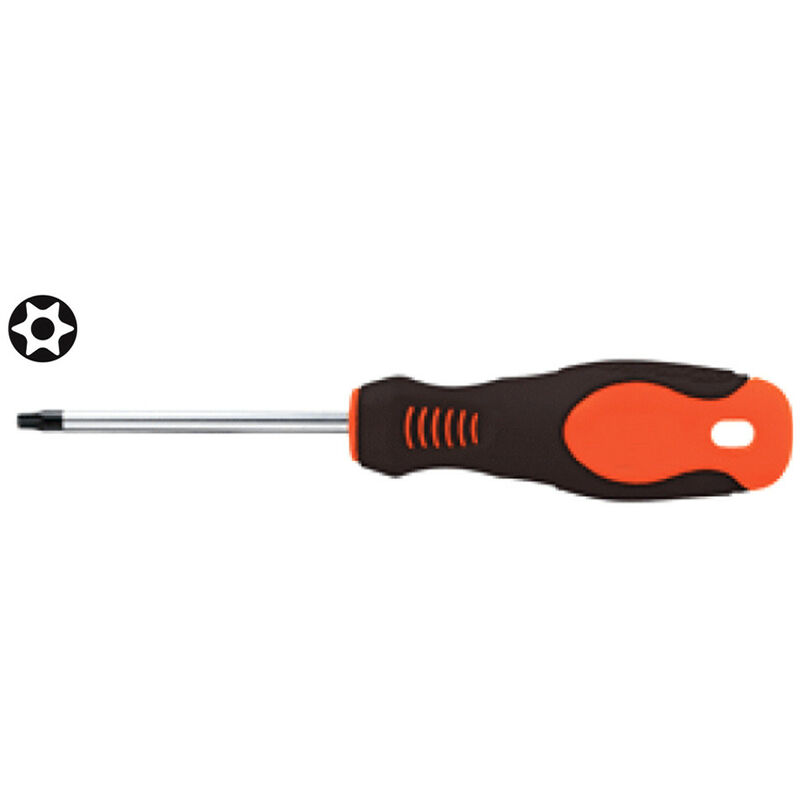 Cacciavite incavo a forma di stella a sei punte Resistorx con lama in acciaio cromo vanadio - Punta magnetica brunita - Dimensioni indicate sulla testa - Impugnatura morbida bimateriale con punti di appoggio per il pollice per una presa più sicura. Misure come da immagini.