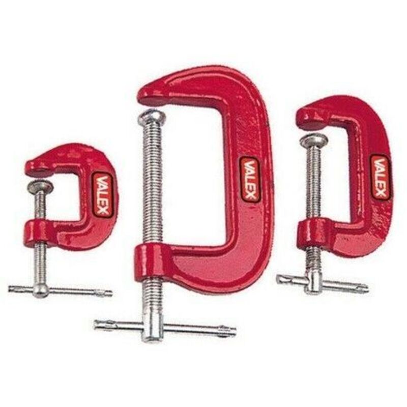 VALEX - 3 PEZZI - SERIE 3 MORSETTI A C - 3 GRANDEZZE DIVERSE Descrizione SET MORSETTI A C PZ.3 - 1454573 - Serraggio a vite - Corpo in ghisa - Apertura / profondità mm: 21/24-46/29-71/40.