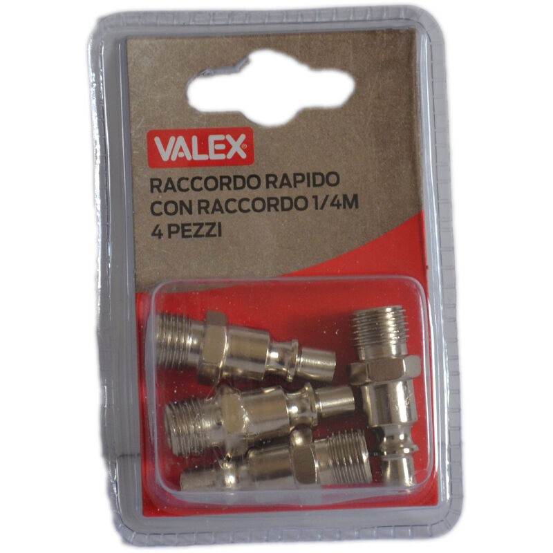 Raccordo rapido - Marca Valex - Con raccordo 1/4M - In acciaio - Blister 4 pz Raccordo rapido Valex con raccordo 1/4M, in acciaio resistente, confezione da 4 pezzi.