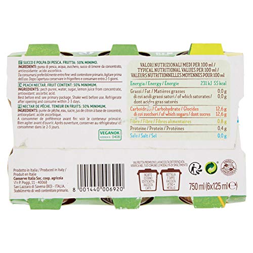 Valfrutta - Pesca, Succo e Polpa, 6 x 125 ml