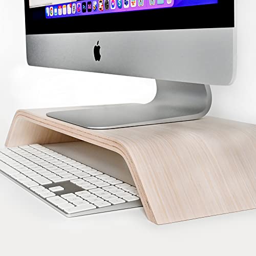Il moderno supporto per monitor a base di compensato è perfettamente sagomato e dona al tuo luogo preferito un tocco scandinavo.
