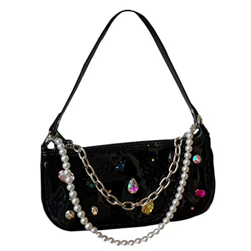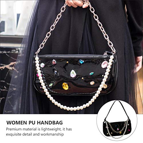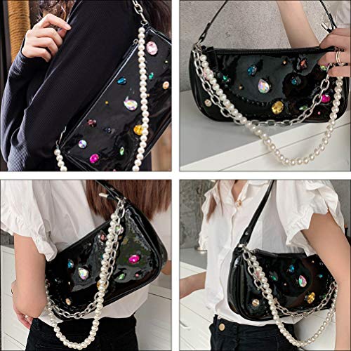 AMPIA GAMMA DI UTILIZZI: Viene fornito con 3 tracolla rimovibile (1 x tracolla a catena in metallo argento, 1 x tracolla a catena con perla imitazione, 1 x tracolla in ecopelle), per poter scegliere di tenerla in mano, sulla spalla o attraversa il tuo corpo, può essere usato come pochette, borsa, borsetta, borsa a tracolla, borsa a tracolla, ecc.