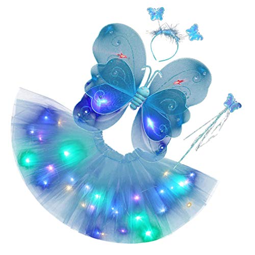 VALICLUD Costume da fata per bambini con luce a LED, con ali di farfalla, tutù, abito magico, cerchietto per capelli, set di farfalle, abbigliamento per ragazze, compleanni, Halloween, feste