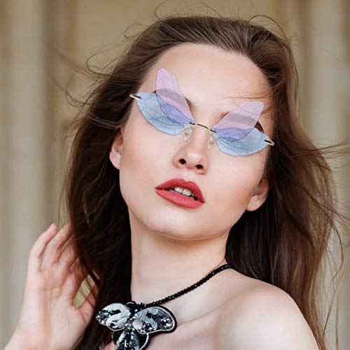 VALICLUD - Occhiali da sole a forma di ali di libellula, personalizzati, occhiali alla moda, per donne e ragazze, lilla e blu