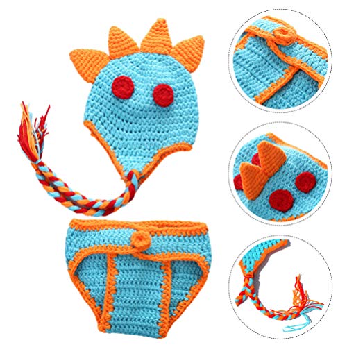VALICLUD 2 Pezzi Neonato All'uncinetto Dinosauro Vestito Fotografia Puntelli Bambino Cappello Lavorato a Maglia Costume Lavorato a Maglia Accessorio Foto Prop (Colore 1)