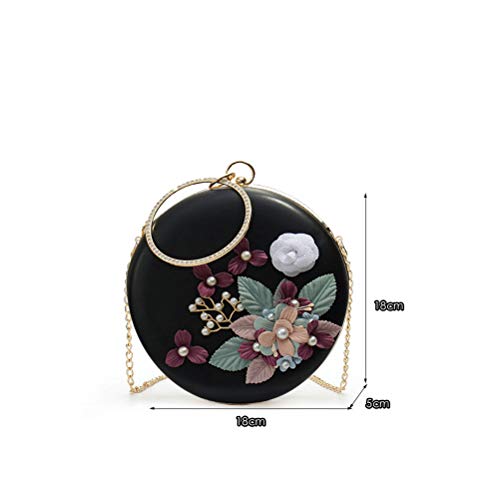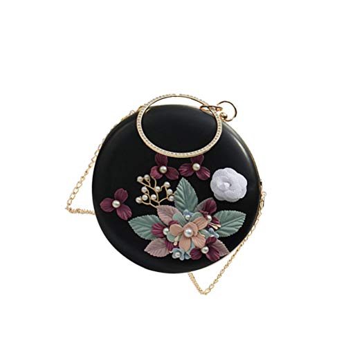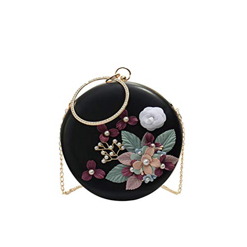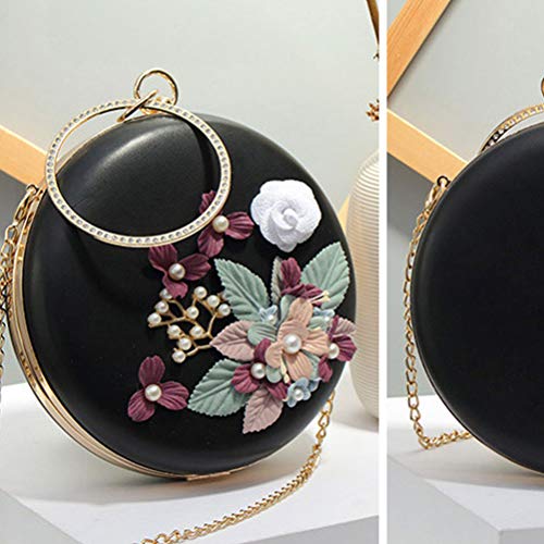 VALICLUD Pochette da Sera Floreale Borsa a Tracolla Rotonda Ricamata a Fiori con Perline e Pochette Borsa a Tracolla Rotonda (Nera)