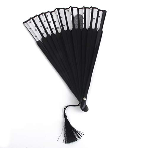 ALTA QUALITÀ: pacchetto compreso: 1 * ventaglio pieghevole. Colore nero. Materiale: bambù, seta. Dimensione: circa 21 cm / 8,3 pollici (lunghezza piegata).