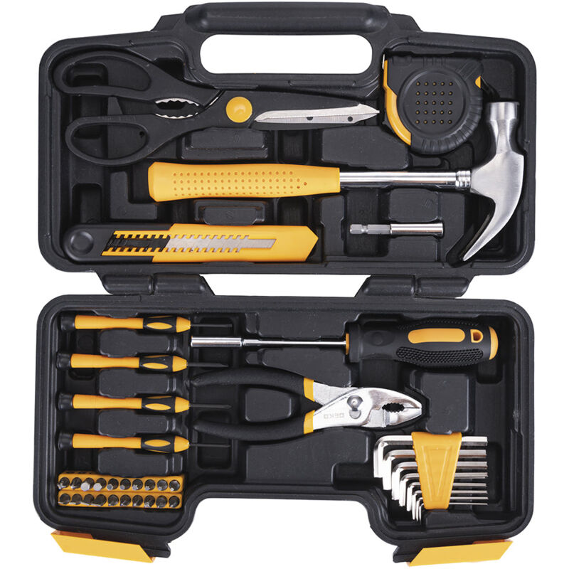 Valigetta attrezzi kit 40 pezzi Valigetta attrezzi Attrezzi in acciaio al carbonio e polipropilene Con kit 40 pezzi Con blocco di sicurezza aperturachiusura Dotato di maniglia di trasporto Con piedini di appoggio Il kit contiene 1 x martello ad artiglio 20 x punte per cacciavite da 1 a taglio 18 532 316 14 Phillips PH1 2 3 PZ 1 2 3 Torx Star T10 T15 T20 T25 T27 T30 Esagono 18 532 316 14 1 x impugnatura cacciavite 1 x supporto magnetico per bit e prolunga 8 x chiave esagonale SAE 116 564 332 18 532 316 732 14 4 x cacciaviti di precisione a taglio 24 mm 30 mm Phillips PH0 PH1 1 x pinze a scatto da 6 1 x flessometro 3 m 1 x taglierino 1 x forbici da 8 1 x custodia Colore nero e giallo Misure valigetta l 315 x p 8 x h 16 cm Colore Principale: Nero + Giallo Materiale Principale: Acciaio + Plastica