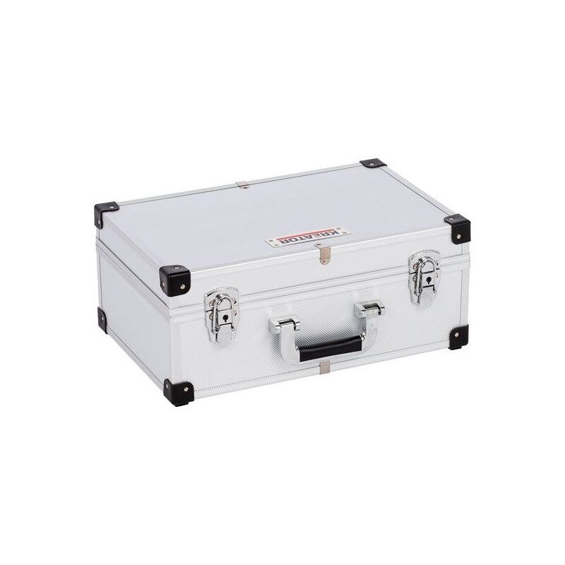 VALIGIA IN ALLUMINIO In questa valigetta con telaio in alluminio di Kreator, puoi tenere i tuoi strumenti separati in tre scomparti. Puoi spostare gli scomparti come desideri. La custodia è inoltre progettata in modo da poter contenere ordinatamente 60 CD. La custodia robusta ma leggera con imbottitura interna misura 420x265x173 mm. Puoi trasportarla comodamente con la maniglia in metallo liscio. Infine può anche essere bloccato con due serrature a chiave e otterrai due chiavi. Questa valigetta è disponibile color argento. Dimensioni: 42,5 x 17,5 xH 27 CM