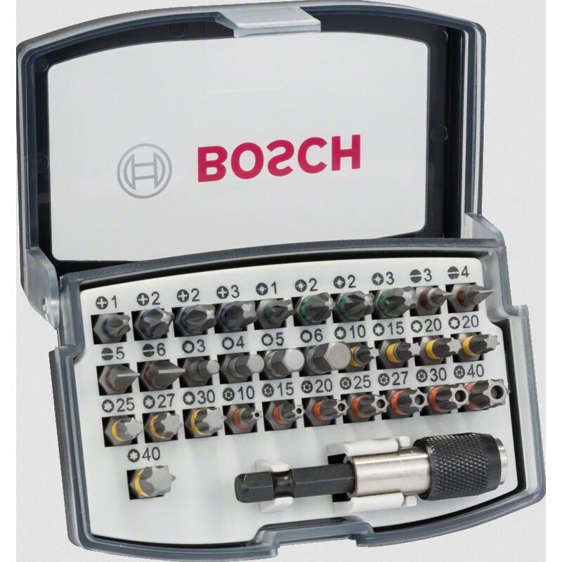 Dettagli: Valigetta 32 pezzi con 31 inserti di avvitamento Lungh. 25 mm + Porta punte universale magnetico Quick Change 1/4 - Impronta philips 1x PH1, 2x PH2, 1x PH3 - Impronta pozidriv 1x PZ1, 2x PZ2, 1x PZ3 - Impronta piatta 1x S3, 1x S4, 1x S5, 1x S6 - Impronta esagonale 1x Hex3, 1x Hex4, 1x Hex5, 1x Hex6 - Impronta torx T10, T15, T20, T25, T27, T30, T40 - Impronta torx forata T10, T15, T20, T25, T27, T30, T40.