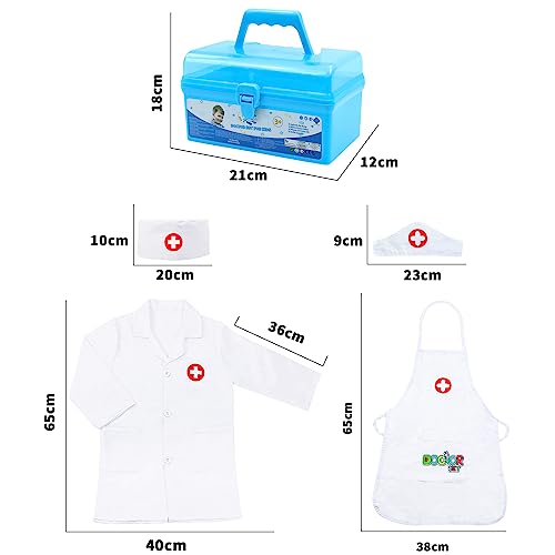 【Valigetta Dottore Bambini kit medico】La kit dottoressa bambina contiene: valigetta, camice dottoressa bambina, vestito infermiera, 2 cappelli, stetoscopio giocattolo, siringa, termometro, otoscopi, 25 accessori ecc. Gli accessori ricchi possono portare un divertimento senza fine Soddisfa e realizza il sogno del tuo bambino per diventare un medico, adatto per giochi bambini 3 4 5 6 7 anni.