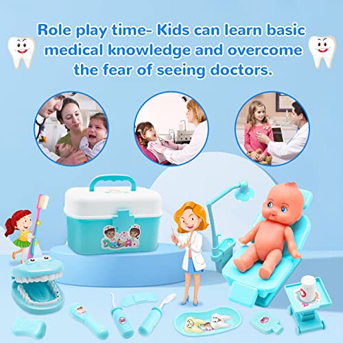 ❣Set di Giochi Finti Medici - Il set dottoressa bambina incoraggia il gioco di ruolo, i bambini possono fingere che i medici o le infermiere curino il paziente, o fingere di giocare al dentista si pulisce i denti con kit di strumenti medici e gadget da 45 pezzi. Aiuta i bambini ad apprendere le conoscenze mediche di base e a superare la paura di vedere i medici.