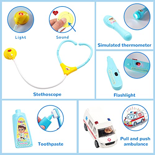 Valigetta dottore bambini, giocattolo medico, set da gioco dottore con stetoscopio giocattolo, cassetta dei medicinali, vestiti di fantasia per ragazzi e ragazze di 3 4 5 anni
