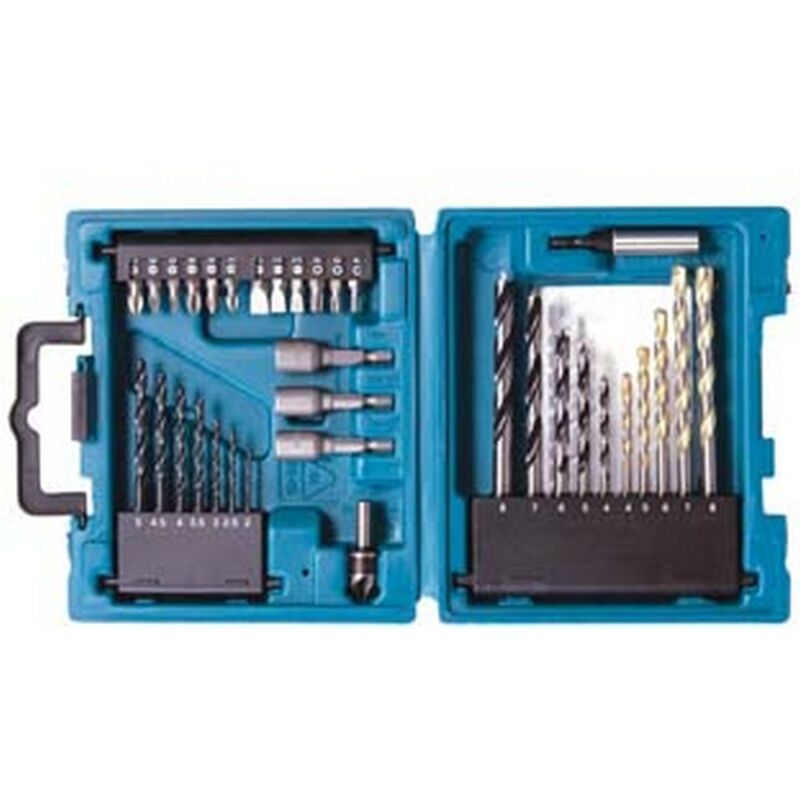 Contenuto valigetta: pz. 7 punte per metallo hss a gambo cilindrico ? mm.2, 2.5, 3, 3.5, 4, 4.5, 5, pz.5 punte per legno ? mm.4, 5, 6, 7, 8, pz.5 punte widia per muro ? mm.4, 5, 6, 7, 8, pz.3 bit avvitatura torx t20, t25, t30, pz.3 bit avvitatura a taglio