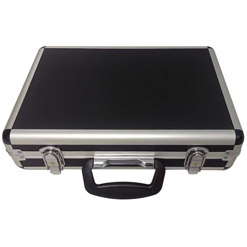 · Comoda valigetta portautensili rigida per portare i propri attrezzi ovunque · Il robusto materiale esterno, unito alla spugna interna, fa sì che le attrezzature di lavoro siano riposte e trasportate in maniera ordinata e protetta · Grazie alla spugna pretagliata nella parte inferiore è possibile personalizzare lo spazio per riporre determinati oggetti, sagomando gli scansi e assecondando la forma dell attrezzo Caratteristiche · Valigetta in alluminio con piedini di appoggio · Finitura zigrinata, con angoli cromati stondati · Maniglia di trasporto · Include due chiavi di chiusura · Interno personalizzabile grazie all imbottitura interna pretagliata per periferiche delicate (es. tester, multimetri digitali, ...) · Colore: nero / argento Specifiche tecniche · Dimensioni valigetta: 390 x 280 x 100 mm · Dimensioni fondo interno: 370 x 263 x 47 mm · Spugna ondulata interna superiore: spessore 3 cm · Fodera interna inferiore in spugna pretagliata: spessore 4 cm Contenuto della confezione ·