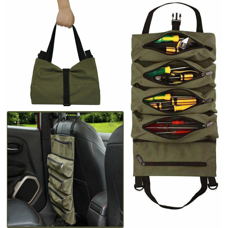 BORSE PER ATTREZZI MULTIUSO - Progettate con una robusta cinghia di fissaggio al centro e 5 tasche con cerniera per diversi tipi di accessori per utensili, impilabili per una facile organizzazione e un rapido accesso. L'organizer per rotoli di attrezzi è adatto per trasportare una varietà di piccoli pilastri, cacciaviti, prese, chiavi inglesi, calibri per utensili piatti, ecc. MATERIALE DUREVOLE MIGLIORATO -- La borsa degli attrezzi è realizzata in tessuto;