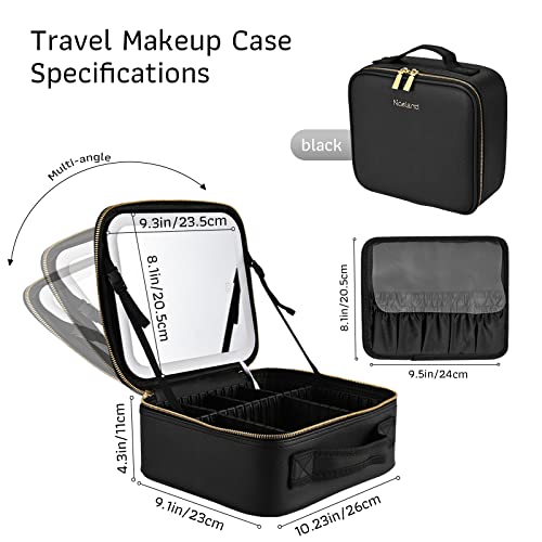 Valigetta per Trucchi con Specchio Illuminato, Impostazioni LED Dimmerabili a 3 Colori, Organizer da Viaggio per Trucchi con Divisori Regolabili, Accessori per Trucco e Custodia per Attrezzi(Black)